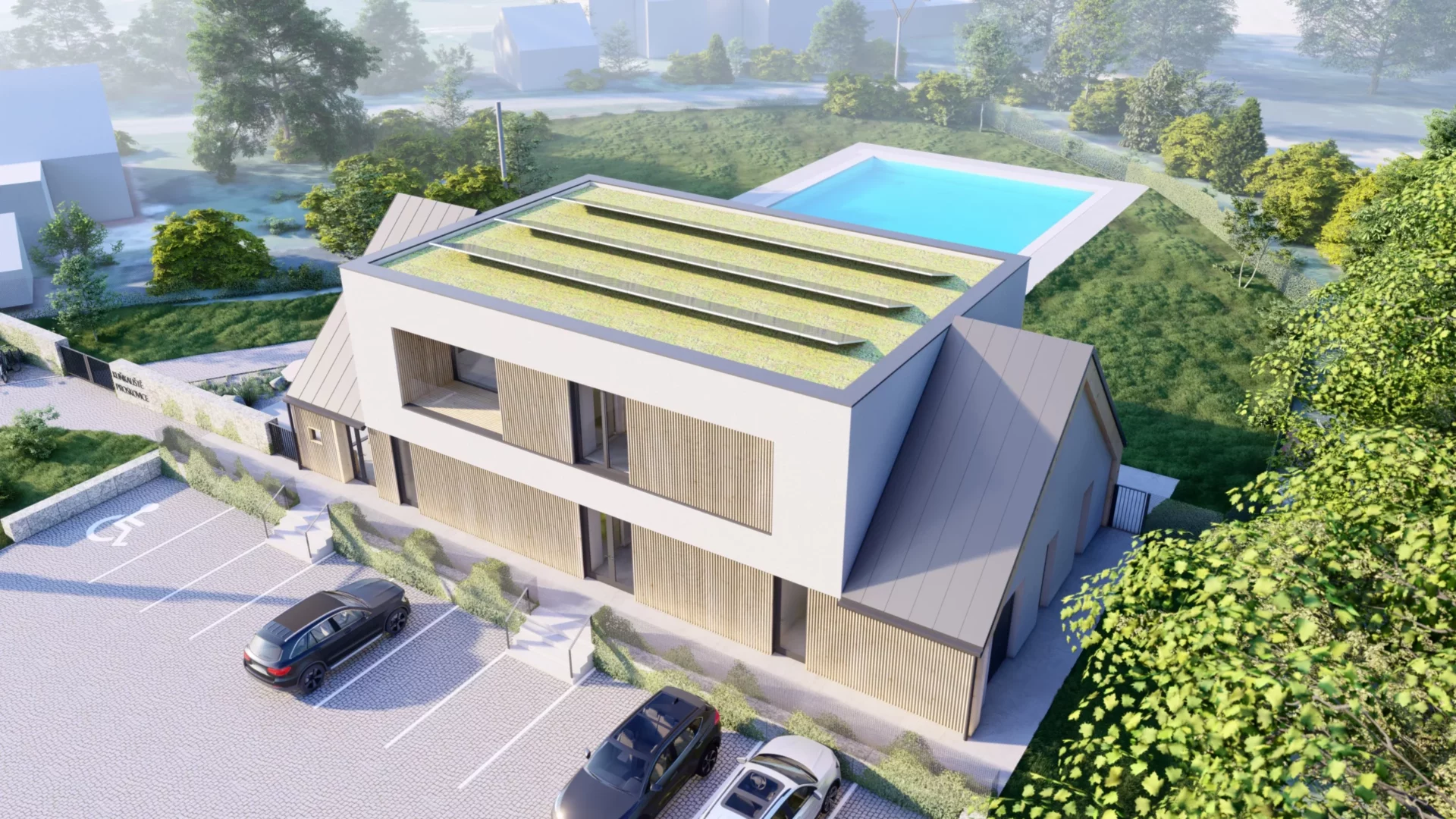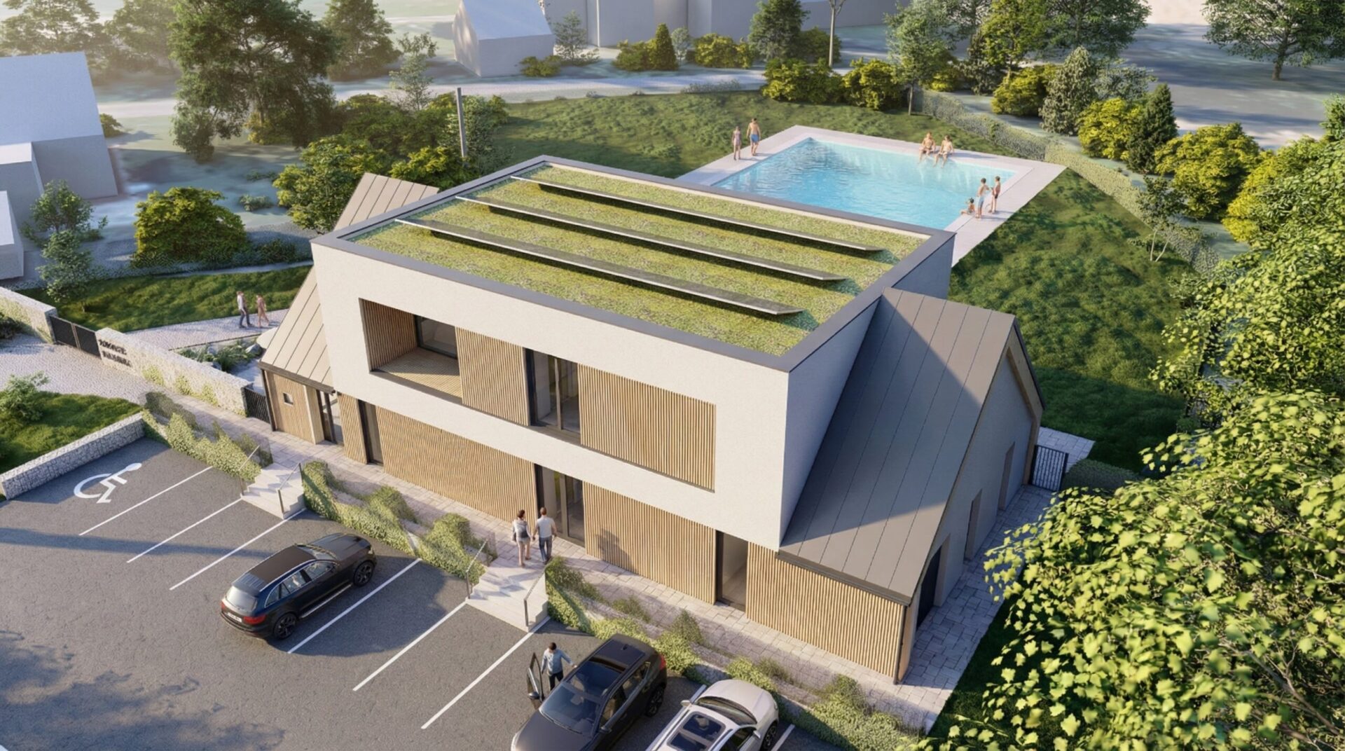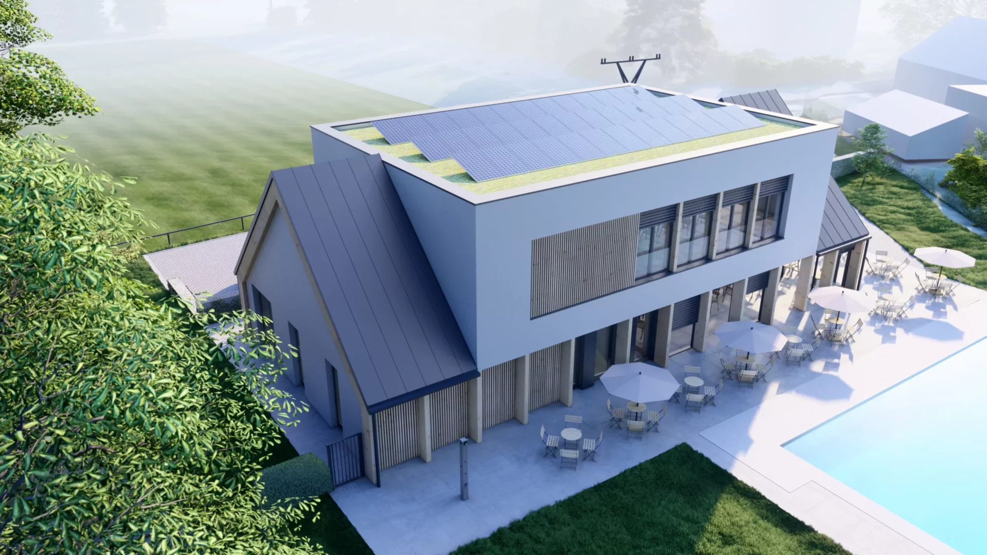 Návrh objektu výrazně ovlivnily prostorové a regulační podmínky území. Zástavbu limituje poloha bazénu, ochranné pásmo vysokého napětí, odstupy od hranic pozemku i nutnost umístění parkování. Důležitým vodítkem bylo také doporučení CHKO, které směřovalo k jednoduché architektuře se sedlovou střechou a světlou omítkou.