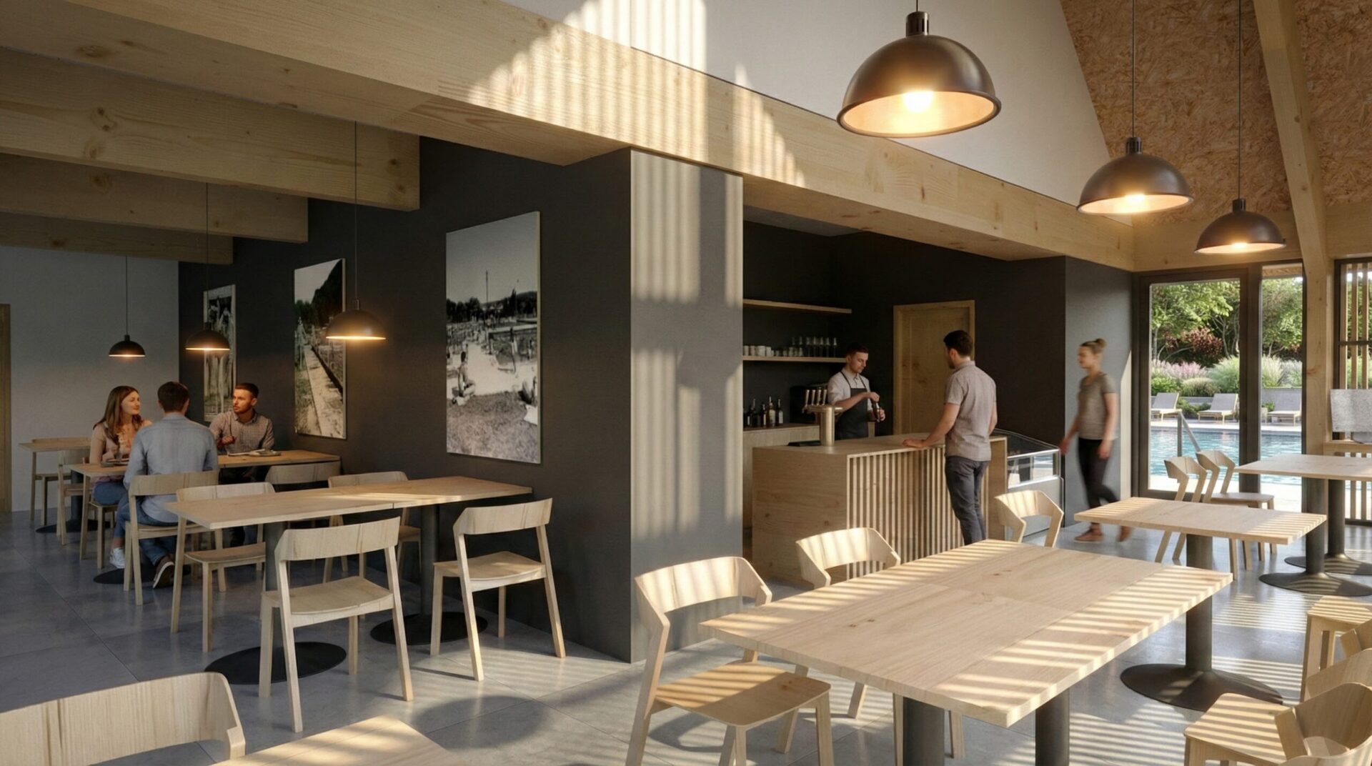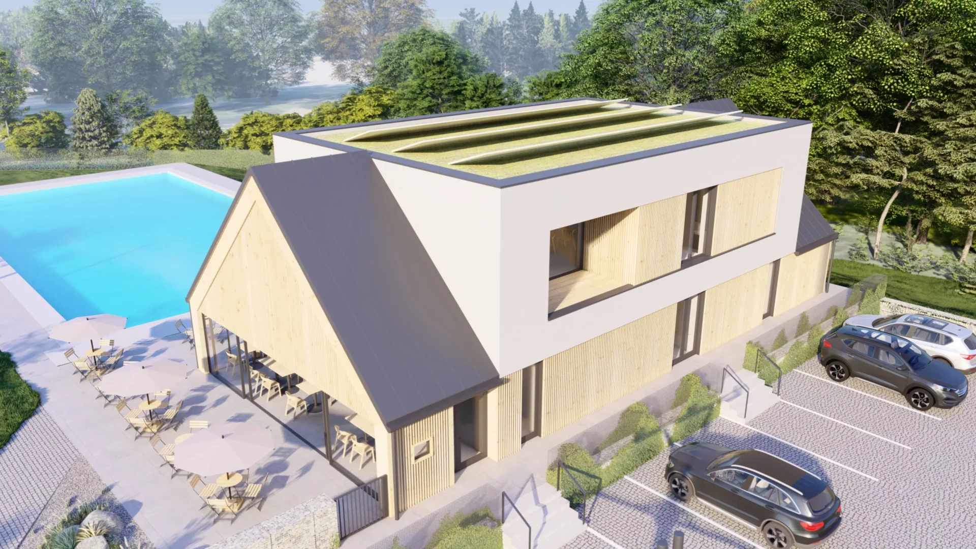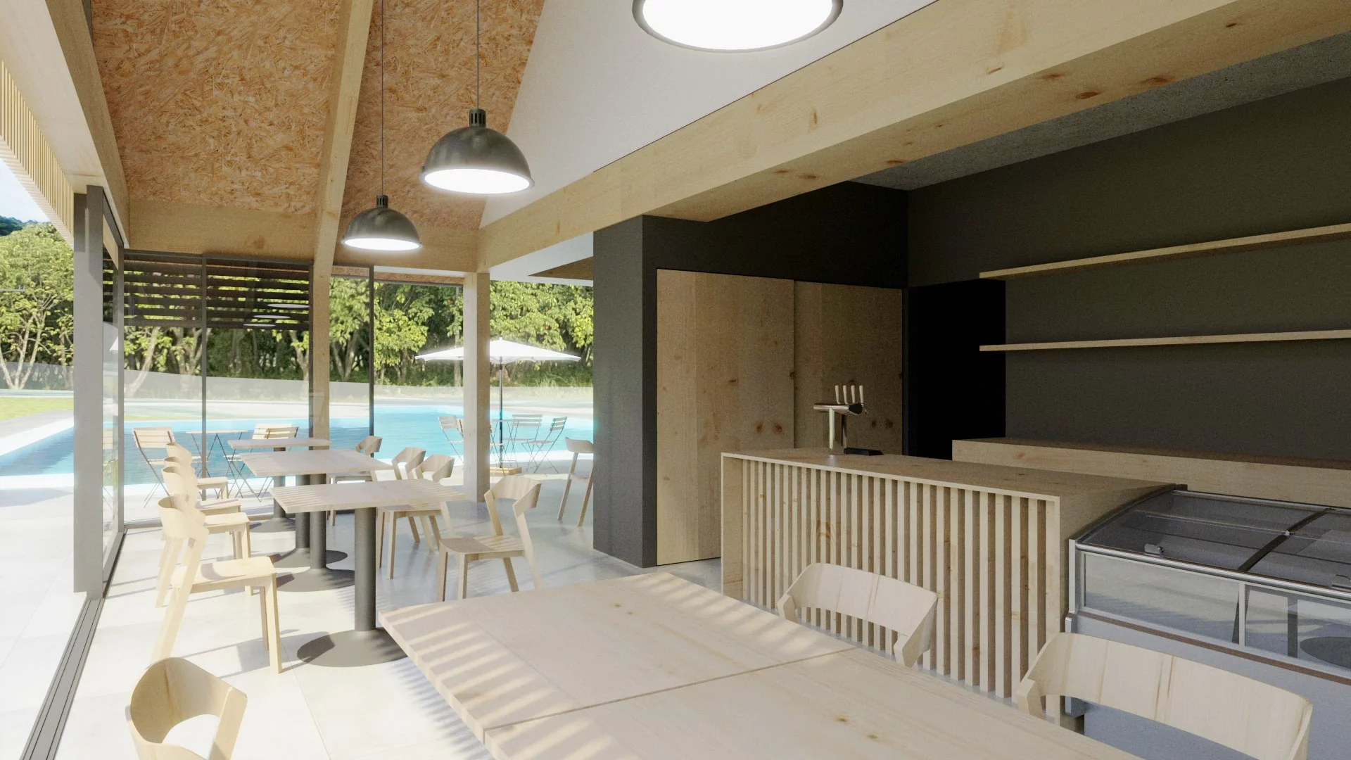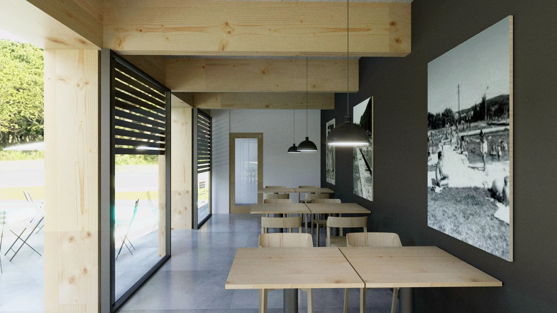 Architektonická studie řeší návrh nového objektu občanského vybavení v katastrálním území Proskovic, ve IV. zóně CHKO Poodří. Stavba je navržena jako přirozené zázemí pro široké spektrum návštěvníků. Slouží amatérským sportovcům využívajícím přilehlou travnatou plochu, návštěvníkům bazénu, cyklistům i turistům procházejícím územím. Součástí je také provoz občerstvení a prostor pro konání společenských událostí, přednášek, svateb nebo rodinných oslav.
